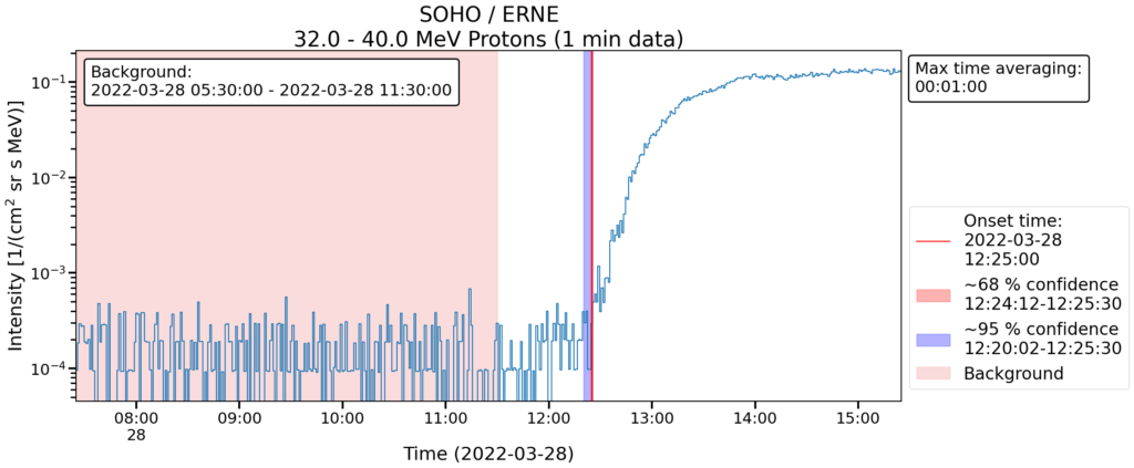 The Python tool, PyOnset, is designed so that users can either import the module into their own Python projects or access a Jupyter Notebook that has been set up to demonstrate the tool’s workflow. This can be done locally or without the need for any installation on the SOLER JupyterHub. The notebook starts by requesting the SEP event details and the selection of the spacecraft and instrument. With an automatically provided quicklook plot (see Fig. 1), the user can then inspect the event and determine the pre-event background.